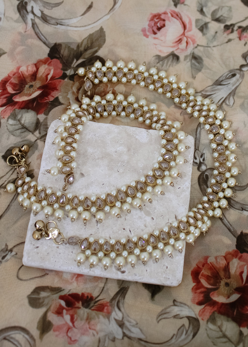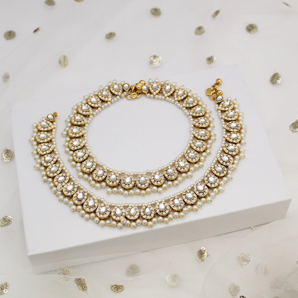 Polki pearl anklets